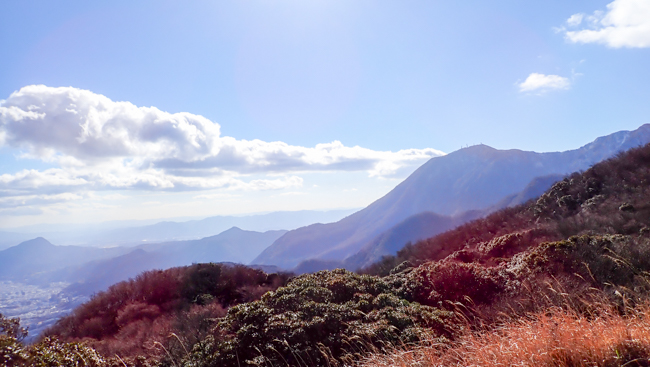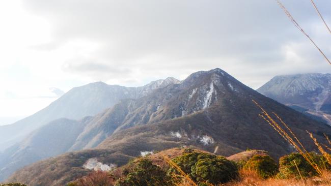 由布岳を見ながらの登山。風が強くて寒かった。