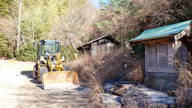 手に見える塚原温泉の建物が、冷えた体への最高のご褒美に見えてきます。