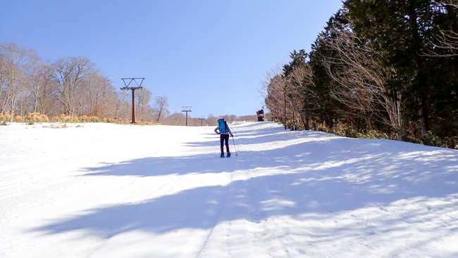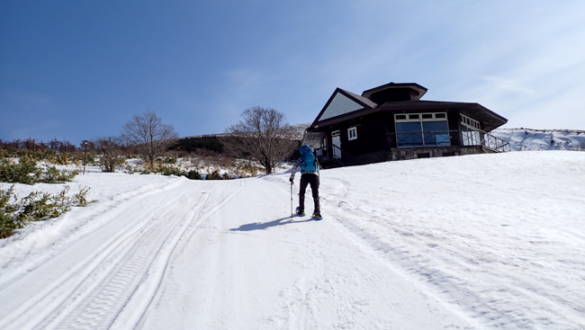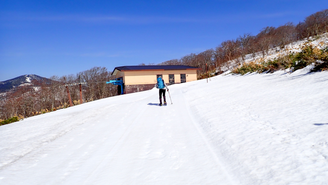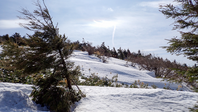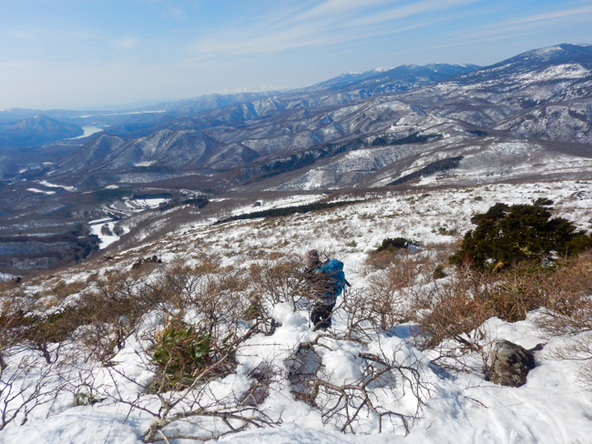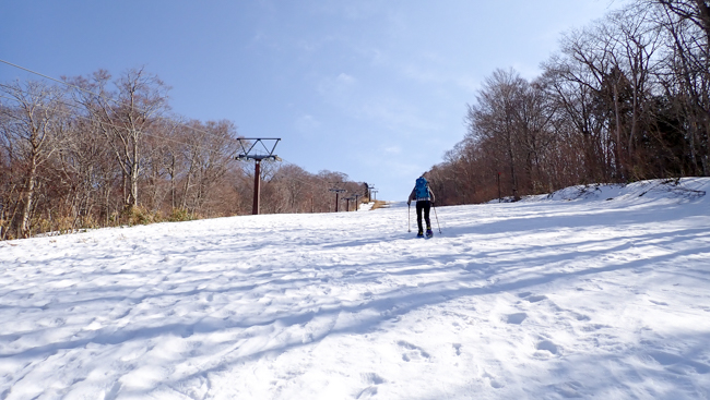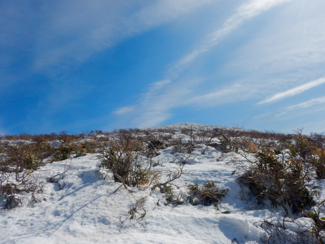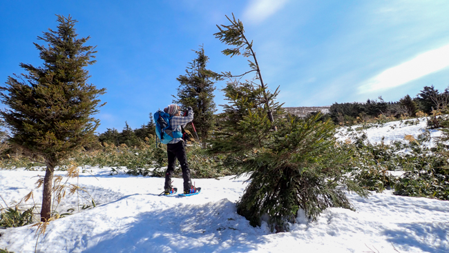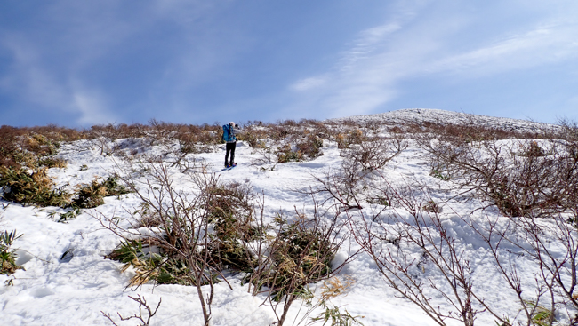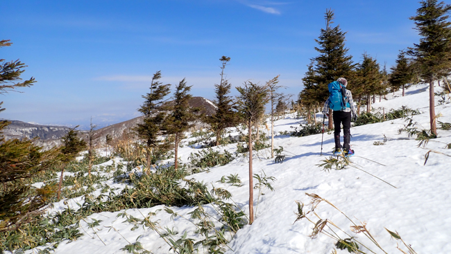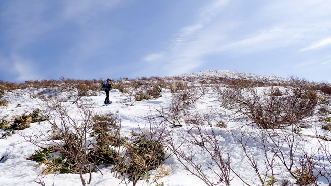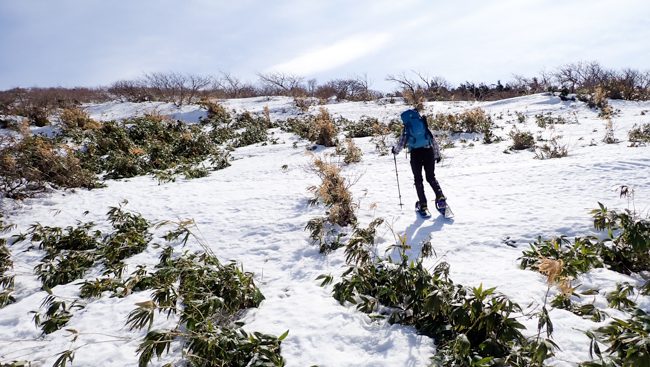 雪が緩みスノーシューでも踏み抜きが多かった。