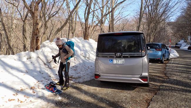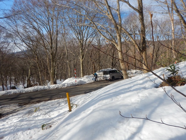 路肩駐車9:48---9:53横向登山口---箕輪スキー場ゲレンデトップ---13:01箕輪山13:23---15:00横向登山口---15:01路肩駐車