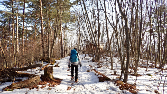 洞穴群を抜け、いよいよ本格的な登りが始まりました。 雪を掻...