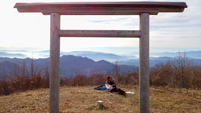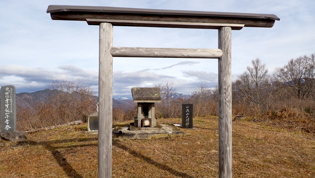 一夜山(標高1087m)に到着!、鳥居が出迎え ...