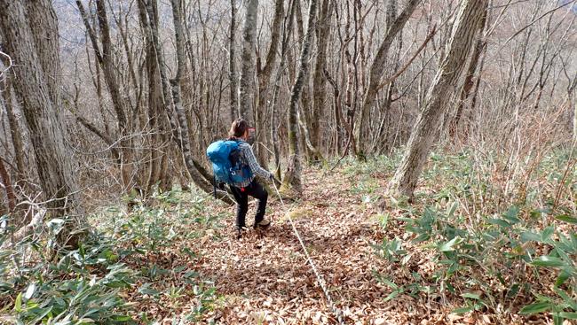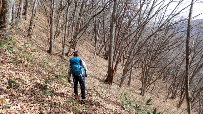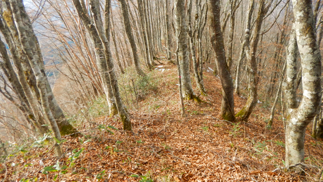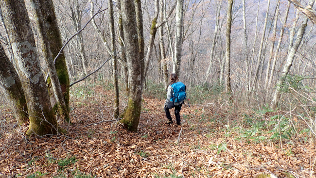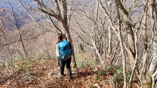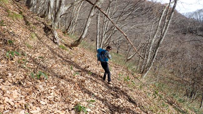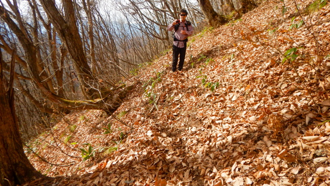 急斜面、ビンテしっかり、落ち葉滑る。 ...