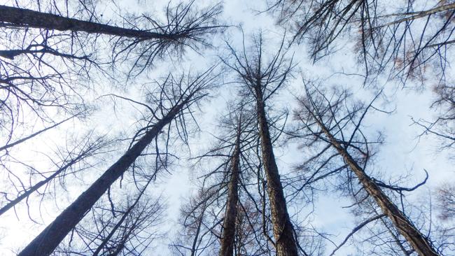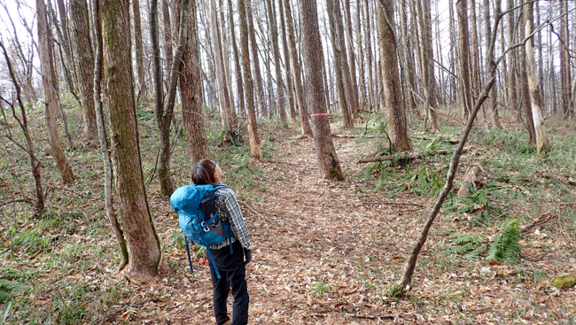 木漏れ日がキラキラ。気持ちのいい下山。 熊棚を探しています...