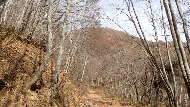 まずはウォーミングアップの林道歩き、寒い。 ...