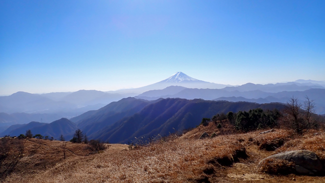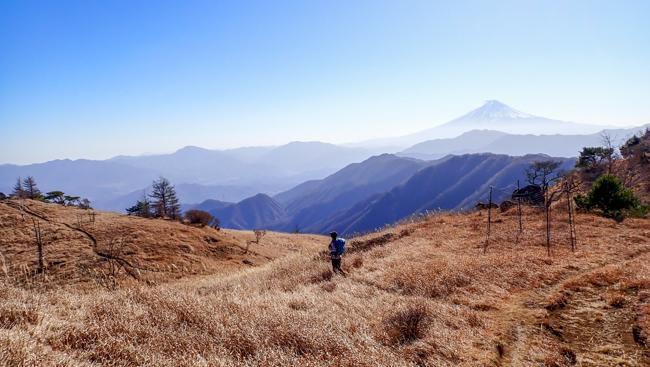 稜線に出ると風が気持ちいい 振り返ると富士山が少しずつ見え...