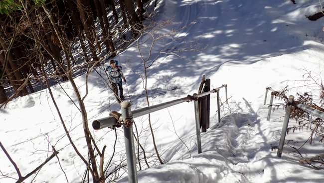 山頂から登り口への下りは、さらに滑りやすくなります。 ...