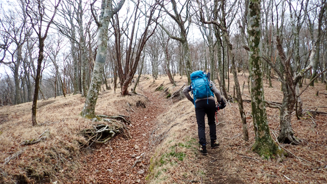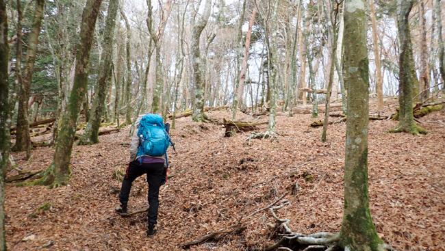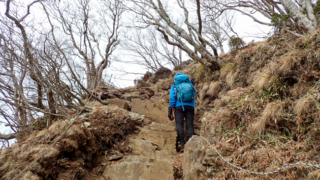 08:40頃 【九折越への急登】尾根へ突き上げる胸突き八丁...