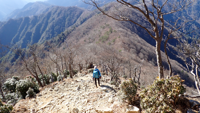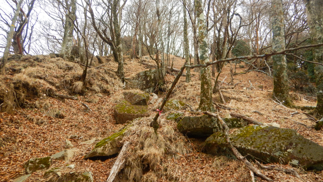 傾山頂上からすぐ近くの「本峰(南嶺)と後傾の鞍部 ...