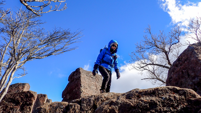「山頂の基部、最後の岩場です。ここは手足を使って確実に。 ...