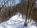 間違えて、反対回りしてしまい、急斜のアイスバーンがチェーンスパイクの為、滑って刺さらず焦ってしまった。通りでみんなが反対周りしているか分かった。 尾根歩き...