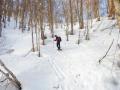 風が強く、雪はそれほどありません。 スキー場トップからは、どこでも歩けますが、 雪が緩みスノーシューでも踏み抜きが多かった。 天気:晴れ 気温:1℃  風...