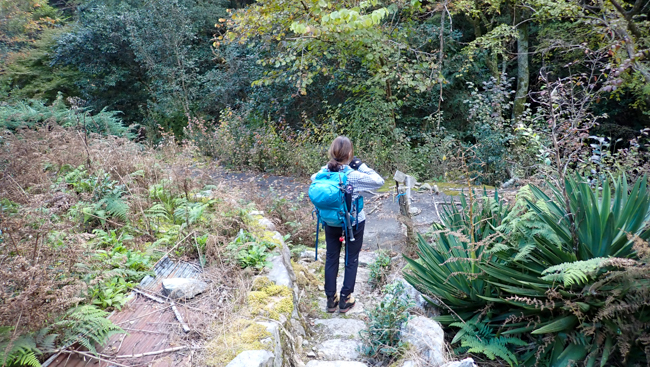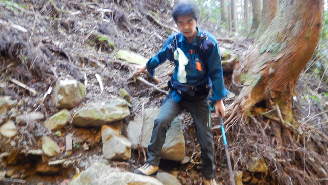 足が疲れたびたび休憩しながら急斜面を下ります。 ...