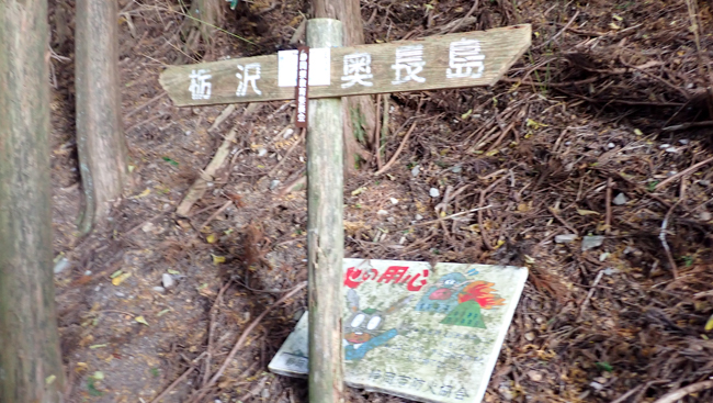沢方面の分岐です。通行注意の看板。沢靴あれば近いので行きた...