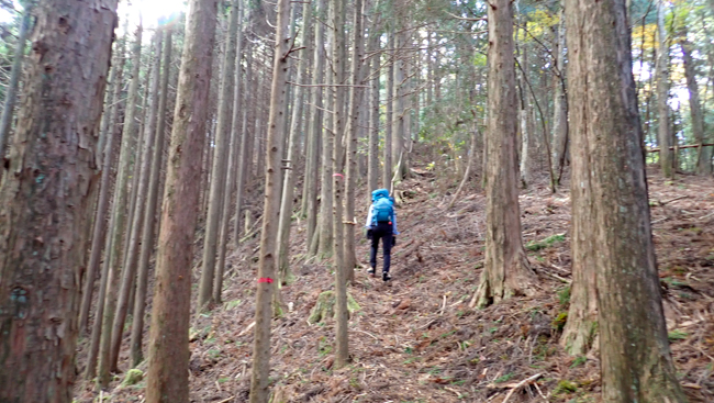 林道を抜けて尾根道へ出る。 急登を登っていく。 ...