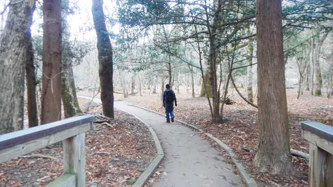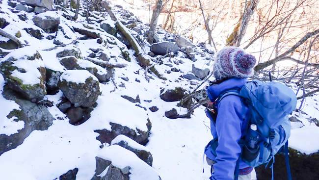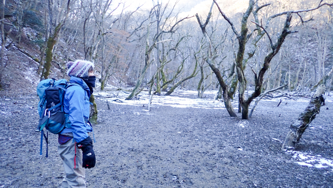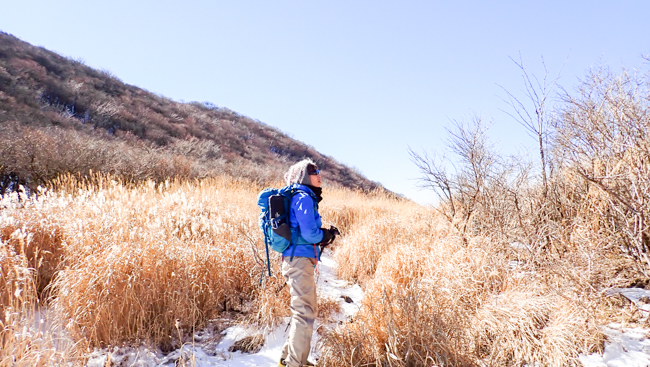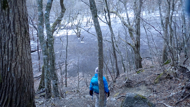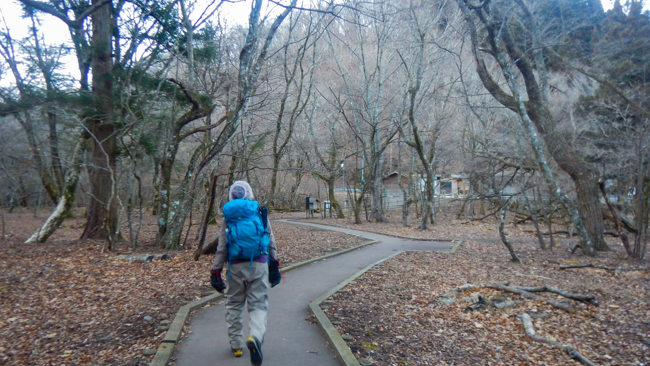 駐車場まではあと10分足らず。冷え切った体を温める温泉を思...
