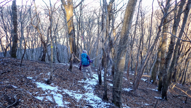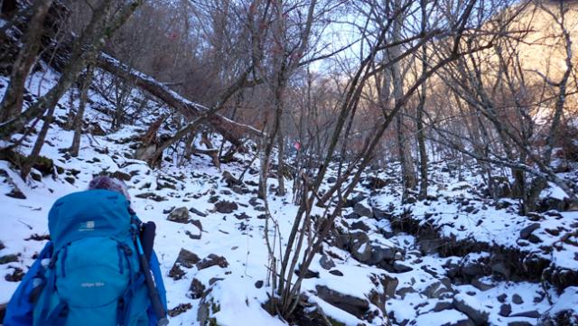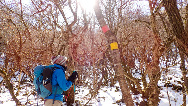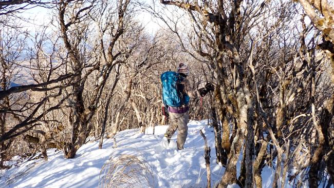 10:00頃 樹林帯の急登開始 中途半端な雪で歩き難い。 ...
