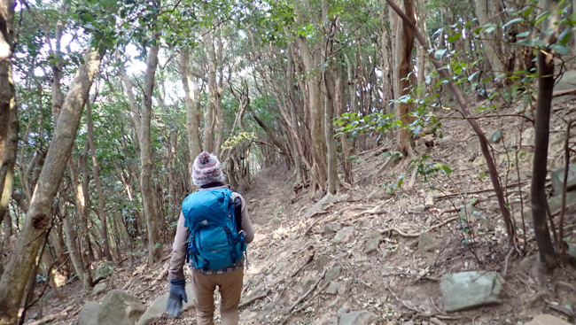 石段を登り、つづら折りの登山道をひたすら登る。 ...