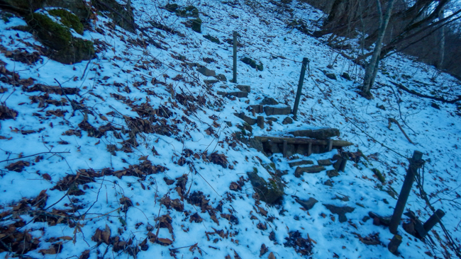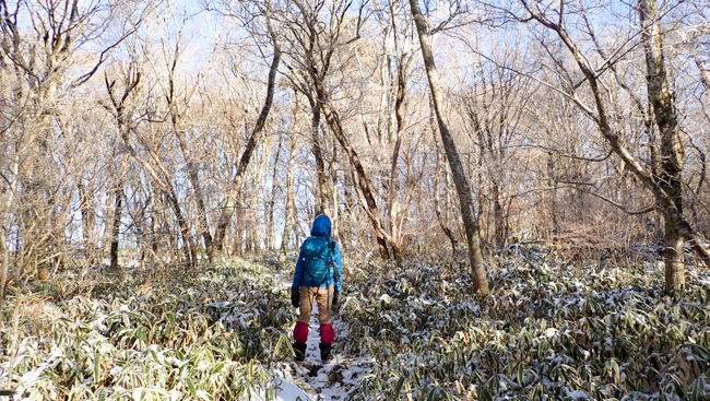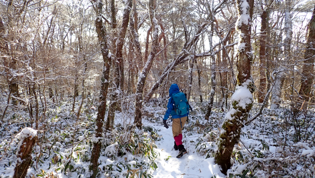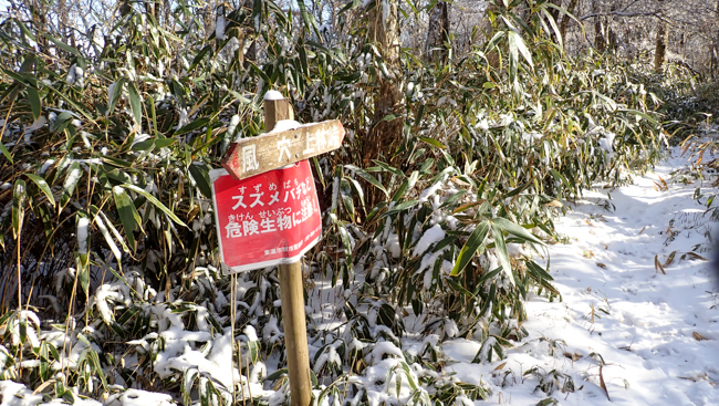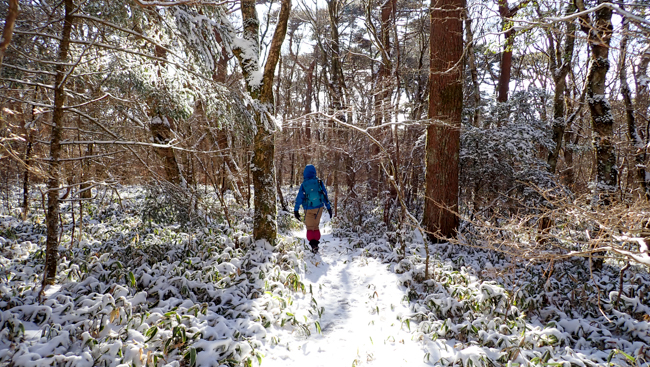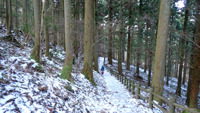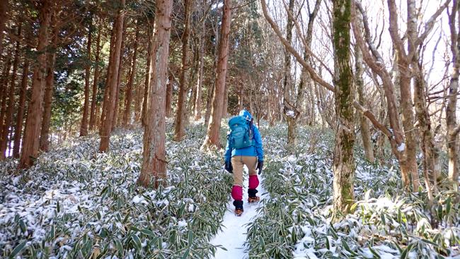 下り道は登り以上に雪でのスリップに要注意 ...