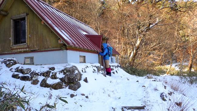 避難小屋(愛大山荘)でコーヒータイム。 ...