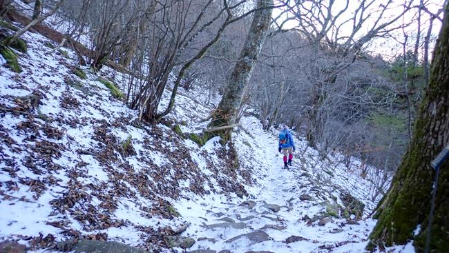 樹林帯の根の張り出した道を登る。 ...
