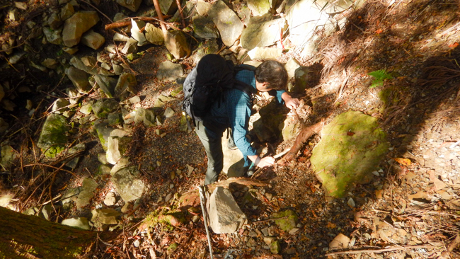 トラバース道が多いので足元をよく見て転倒しないように気を付...