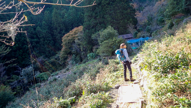 足が疲れたびたび休憩しながら急斜面を下ります。 ...