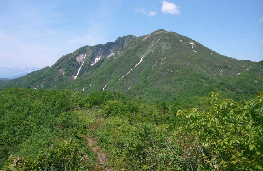 1998年5月31日、頸城山塊・シゲクラ尾根より「雨飾山1963.2m」を望む