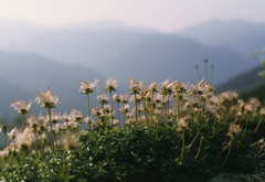 富山県側の有峰湖・折立から、3泊4日にて「雲ノ平」に入山したことがある。初日に薬師岳2926mを往復し、雲ノ平・水晶岳・鷲羽岳・三俣蓮華岳・黒部五郎岳をぐるりと走破する贅沢な山行だった。素晴らしい景色の連続も、長く続くと食傷気味になる。ふと、雷鳥達にこの景色はどう映るのかと、思いっ切り体を伏せてみた。チングルマの花は咲き終えていたが、遠くの山々は淡く霞み、不思議な世界が展開した。