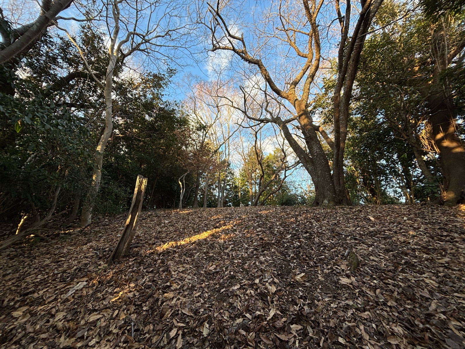 静岡県「沼津アルプス」は低山100名山に数えられる山の一つで、週末には時に100名近くの団体さんが訪れることも珍しくありません。でもそれはお昼の一時の話。冬の午後4時の時間には当てはまりません。大平山の山頂は、一面の落葉の絨毯と静けさしかありません。南の眼前には、木立越しに淡島と三津湾(駿河湾)の穏やかな波のキラメキが広がっています。山を知る(感じる)と言うことは、地元の暮らしを知ることであり、無垢な自然を感じ取りることだと、あらためて知るきっかけとなりました。