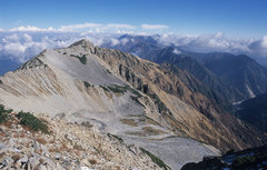 2002年10月14日、薬師岳2926m山頂から「北薬師岳」と「金作谷カール」を望む