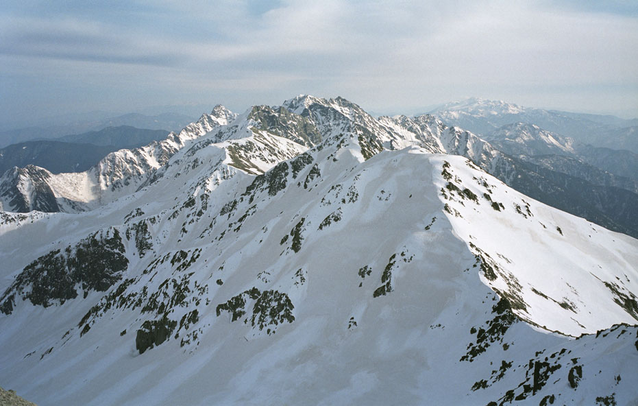 1996年5月4日、槍ヶ岳山頂より穂高岳連峰を望む