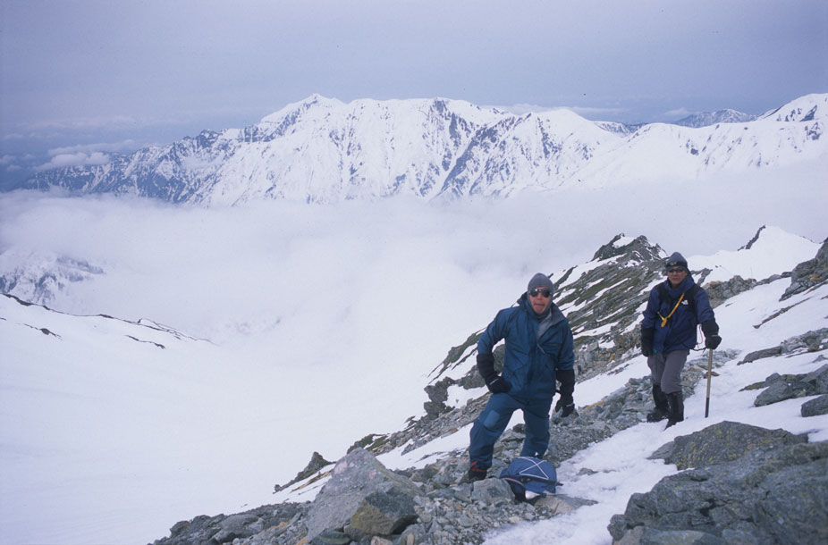 2009年5月4日、槍ヶ岳西鎌尾根を登る(西鎌尾根・千丈沢乗越付近にて)