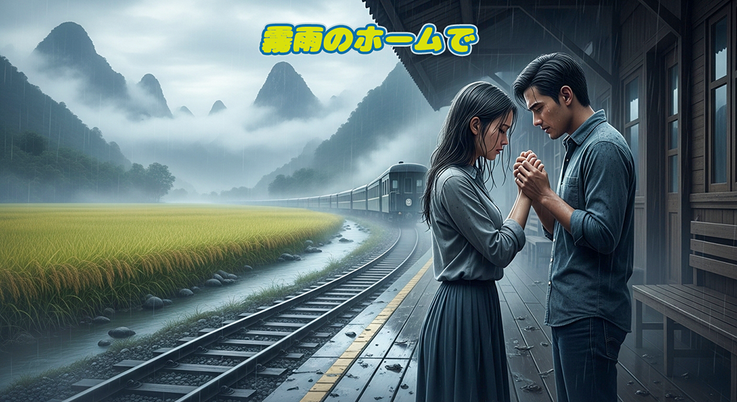 **「霧雨のホームで」**
