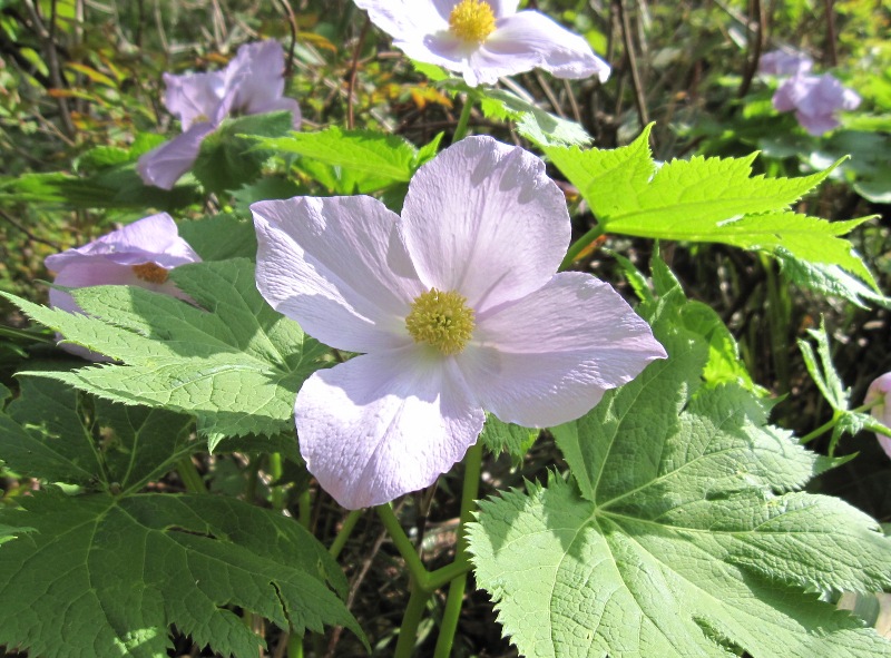 笹ヶ峰登山口から火打山に行く途中、十二曲りでシラネアオイが群生していました。