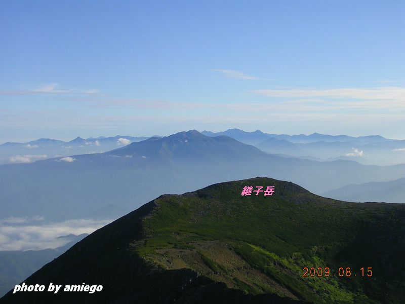 [<   雨飾山から日本海 山の広がり 御嶽山継子岳付近より魔利支天と剣ヶ峰 御嶽山 魔利支天より乗鞍と北アルプス 奥穂高岳・馬ノ背 残照のジャンダルム 残照の穂高岳側稜   >]