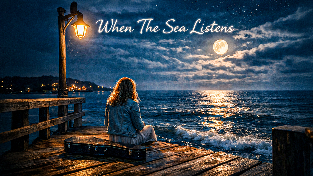 **「When The Sea Listens」** (Ooh… mm…) I walk where the harbor holds its breath And the tide, it listens when I speak Old dreams hum in the undertow The dark begins to feel like light Now the tide, it listens when I breathe I leave my echo in the foam [Ooh… mm…) |