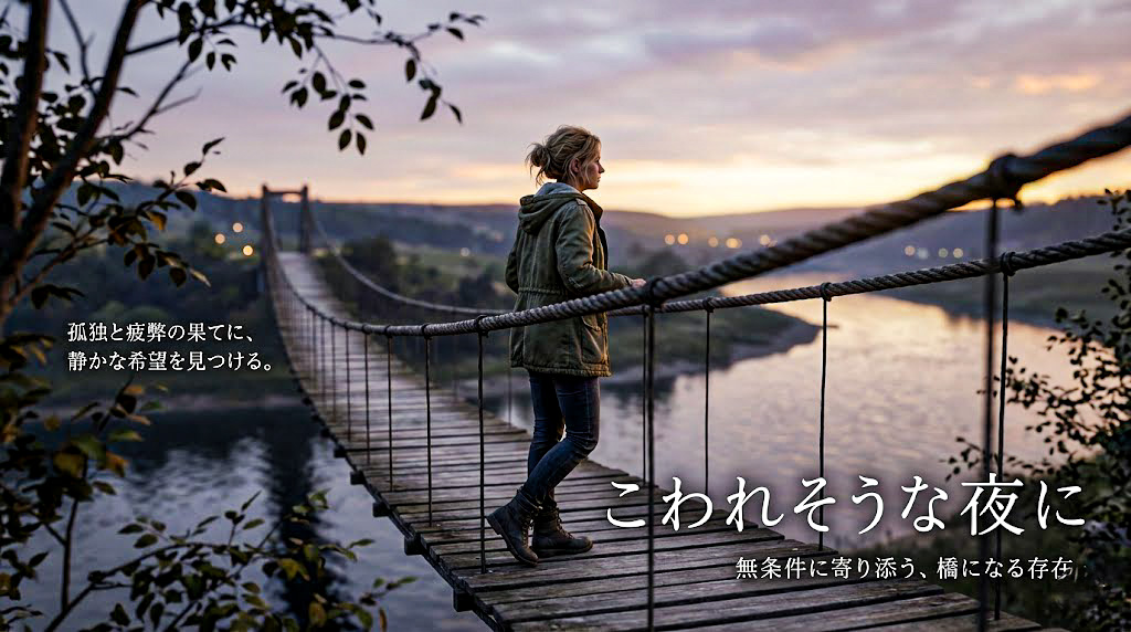 この歌詞は、孤独や疲弊の極限にある人物に対して、無条件に寄り添い支えようとする存在を描いている。日常的でシンプルな言葉を使いながら、「橋になる」という象徴的なイメージを軸に、苦しみを越えるための支えを表現している点が特徴的である。前半では静かな絶望と内面の沈黙が描かれ、中盤で他者の受容と共感が差し込まれ、後半では回復と前進への強い意志へと転換する構造になっている。特にクライマックスでは、個人の救済を超えて「一緒に乗り越える」という共同性が強調され、観客との一体感も含めた感情の爆発が生まれる。全体を通して、支える側の覚悟と優しさが中心に据えられた構成である。 ...