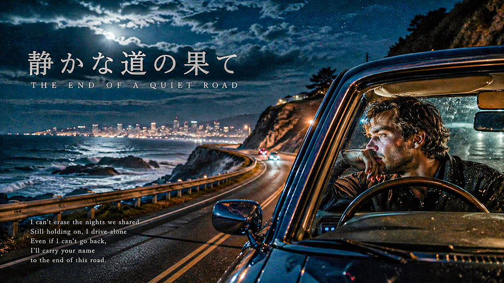 この歌は、夜の海沿いの道を走りながら、過去の記憶と向き合う心の過程を描いている。物理的には前に進んでいるのに、感情は同じ場所に留まり続けているという矛盾が軸になっている。景色や音、匂いといった具体的な感覚が、失われた相手の記憶を呼び起こし、言葉にできなかった想いを浮かび上がらせる。前半は静かで抑えた語り口だが、進むにつれて感情が蓄積し、クライマックスでは抑えていた想いが一気に噴き出す構造。特に最後は「受け入れる」のではなく、「抱えたまま進む」という選択に着地しており、未完のままのリアルな感情が残る。静けさと爆発の対比が強く、聴き手に余韻と共鳴を残す。 ...
