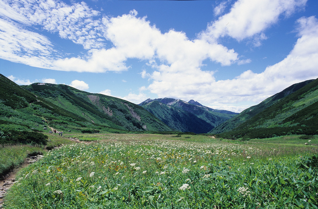 普段何気なく素通りしている山でも、写真にして初めて美しさに気付くことがある。双六湖畔(湖があるわけではないが)もその一つで、美しい草原と夏空の下に「笠ヶ岳2897m」が映えて、思わず立ち止まってしまった。