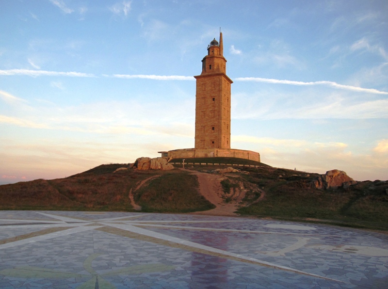 ヘラクレスの塔 - ローマ時代に作られた灯台(現在の形になったのは18世紀)で世界で唯一現存。2009年世界遺産に登録された。。市街から2.4km、大西洋に囲まれた丘の上に建つ。