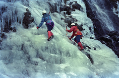 古いアルバムを整理していたら、アイスクライミングの写真が出て来たので掲載する。四十八滝沢は、都留市大幡高畑・宝の山からクライミングで名高い「三ツ峠山」の一角である御巣鷹山に突き上げる登山道と並走する沢で、「冬の三ツ峠山」と聞いて「アイスクライミング」を連想出来る登山者は、そこそこクライミングをかじっている人だろう。30年前の写真なので、服装や登攀装備は今とは違ったものかもしれないが、何か妙に懐かしい感じがした。