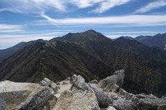 2012年10月13日、北アルプス・大下りの頭2678m(燕岳〜大天井岳稜線)より大天井岳2922mを写す