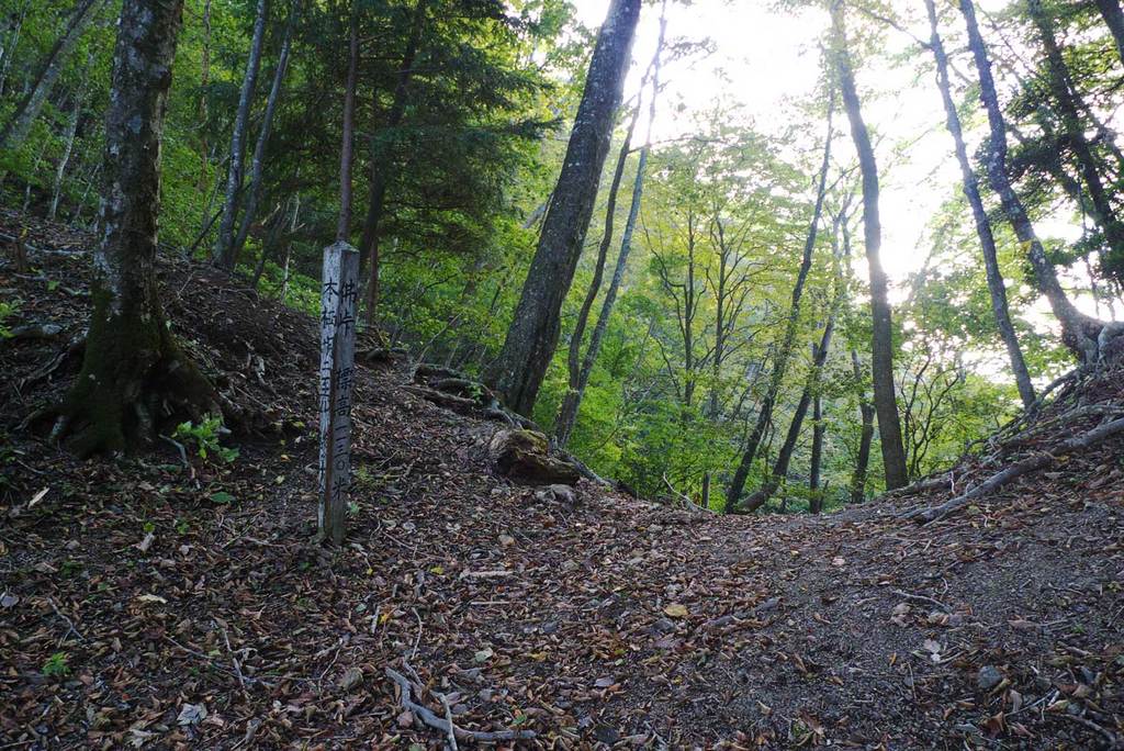 今月の「岳人(2012年11月号)」に、「とっておきの山歩き」と云ううたい文句で、「烏帽子岳〜中之倉山(富士五湖・本栖湖畔の山)」が紹介されていた。広葉樹林の美しさに惹かれて足を運んでみた。岳人の記事に従えば、本栖隊道の登山口から烏帽子岳〜パノラマ台を経由して中之倉峠〜中之倉山〜仏峠〜本栖湖畔の登山コースとなる。FURAIBOU はへそ曲りだから、良い道が当然の東海自然歩道を割愛して、中之倉峠から歩いてみた。整備された中之倉峠までの道と打って変わって、この峠から中之倉山〜仏峠は、踏み跡が続くだけの頼りない道だ。岳人に紹介されたばかりだから、さぞや登山者で賑わっているかと思っていたが、人気は皆無で本栖湖畔のキャンプ場まで独りっきりだった。中之倉山1247mは、枝に小さな標識が吊るされた展望皆無の手狭い山頂。記載された言葉通り、稜線の西側(山梨県身延町)は広葉樹林が広がるが、本栖湖側は荒れた桧の造林で寂しさが漂う道だ。中之倉山山頂からの急な尾根をひと下りすれば、本栖湖畔を示す下山標識がある。仏峠は一山超えた先にあり、FURAIBOU はうっかり下ってしまって直ぐに間違えに気付いた。登り返して一山超えると、仏峠(佛峠/ほとけとうげ)。手前、本栖湖に至る。反対側は、釜額(身延町かまひたい)に至る。西面には、良く整備された山道が身延町まで続いていた。朽ちかけた標識が立つだけの何も無い峠である。しかし、山梨県身延町と富士山麓の村を結ぶ古き生活道の味わいが漂っていた。佛峠の両面には、豊かなブナ・ミズナラの原生林が広がっていた。マイナーな何も取り柄も無い山だが、満ち足りた山行であった。