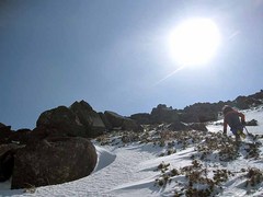 2013/03/24 木曽御岳山 継子岳(2858m)直下 天気快晴、気温0°チャオ御岳スノーリゾートから