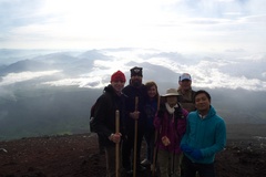 FURAIBOU は、会社の同僚にせがまれて「世界遺産」に登録されたばかりの富士山に登ってきました。東海地方は梅雨明け直前で、八合目より下は上々の晴天、八合目より上部は霧雨と強風で悪天ながら、大勢の登山者で山頂小屋は賑わっていました。写真は、途中で出会った、好印象の外人グループと記念撮影をお願いしました。チャイニーズ、アジア系の言語を話す面々、ドイツ語やら北欧の言葉を話す人々など、富士山は様々なお国柄の登山者も加わって、大混雑でした・・。今夏は、40万超えるとも予想される富士登山ブームの再来です。出かける方々は、十分なゆとりを持ってお出かけください。