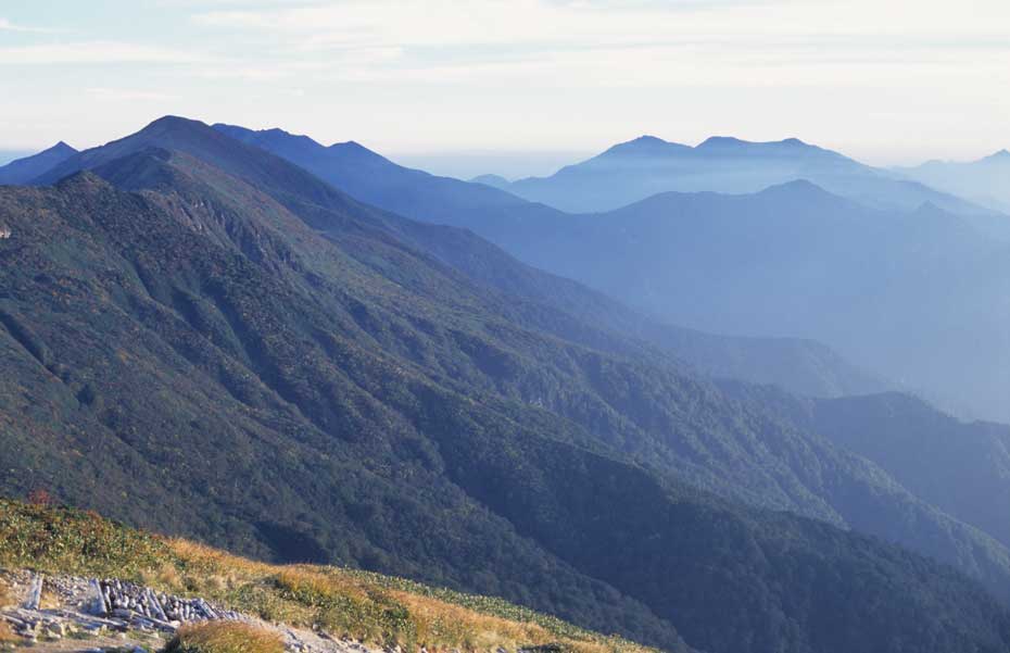 米子沢の遡行を終え、山頂からの景色も堪能して下山する。暮れゆく谷川連峰を見ながらの歩行は、沢登りの疲れをいやしてくれる。山のエンディングはこうでなければ!