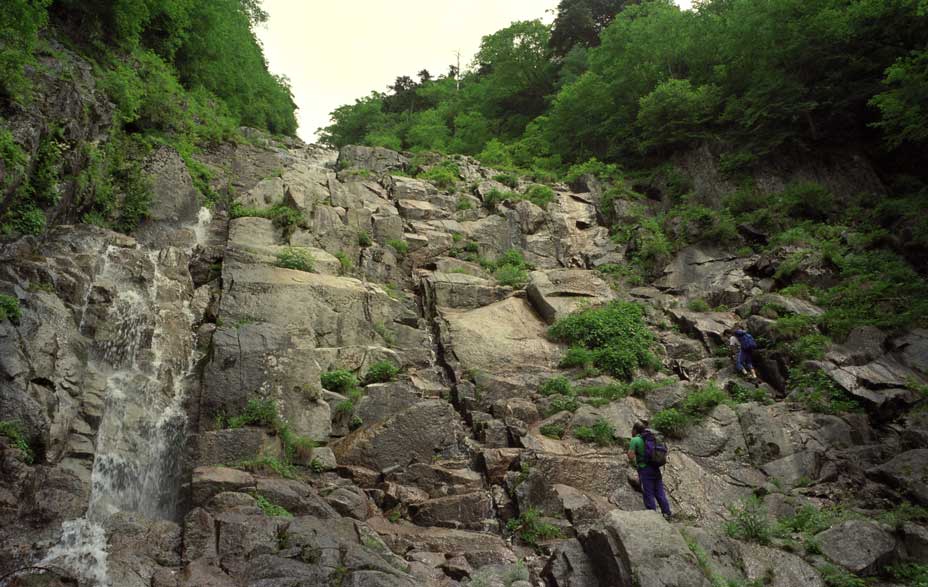 少し行程は長いが、奥秩父には興味を惹かれる渓谷が多い。ヌク沢左俣の大滝は、落差100mを誇り幅広く堂々としている。平成6年度以降から造成された堰堤の多さには閉口したが、この先の原生林のナメ滝の美しさにホッとさせられた。