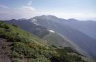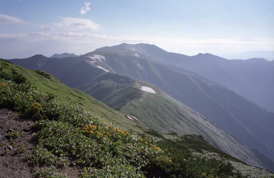 1996年8月17日、大日岳2128mより御西岳〜飯豊本山稜線を望む。