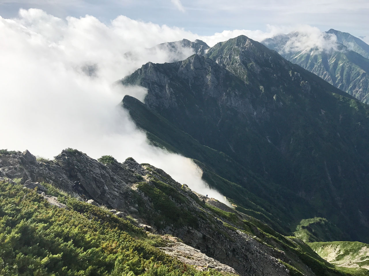 2017年8月14日、北アルプス後立山連峰「天狗ノ頭2812m」から「不帰ノ嶮」に続く稜線